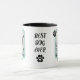 Looking for a unique way to celebrate your love for your furry companion? Our custom dog photo mug is just what you need! Personalize it with a photo of the "best dog ever" and enjoy your favorite beverage in style. On both sides, it features a light green frame around the picture of the dog as well as a paw print with a heart in it and your dog's name in a script typography. In the middle, it features the quote "BEST DOG EVER." Further customizable by you, it's the perfect gift for you or any dog lover in your life!