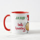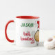 Personalize esta caneca de café de Natal com o seu próprio monograma, nome ou outras palavras. Esta caneca apresenta um design de desenho animado de ovelhas com chapéu de Papai Noel, flocos de neve ao fundo e "seu nome" mais "saudação" Esta caneca é tão fofa e faria um presente perfeito para um colega de trabalho, amigo vizinho e outros.