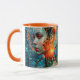 Fuel your intense late-night coding sessions, massive gaming marathons, or busy morning workflow with a ceramic mug that radiates pure, high-tech cybernetic energy. Utilizing the larger 15oz format, this mug beautifully displays the striking artwork of a futuristic female cyborg. Every single sip immerses you in a cyberpunk world, featuring complex biomechanical wiring, bright neon orange neural sparks, and cyan holographic data screens.