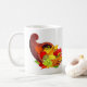 Caneca de café mostrada com um impressão festivo do cornucopia da colheita da acção de graças.