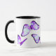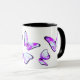 Baseado em um design original esta caneca é decorada com uma nuvem de borboletas pearlescent, de suas asas que um shimmer de aumentou, de lilac e de azul-céu.