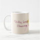 Agrida com minha colagem no centro digital criada do original de um ramo da borboleta e da cereja. O swallowtail-tipo borboleta é feito em uma ilustração brandamente frouxamente detalhada da aguarela no amarelo acentuado por destaques alaranjado-marrons profundos. A única haste que magro vibra é enchida perto com as flores de cerejeira cor-de-rosa brilhantes. Os pares de linhas ténues acima de cada um das asas da borboleta sugerem o movimento. Em um lado da caneca é a frase "ensino dá as asas da mente à mosca". No lado oposto é um lugar para um nome da escola e abaixo da borboleta, de um lugar para seu nome ou da outra personalização. Todo o texto da amostra nesta caneca pode facilmente ser mudado para serir suas necessidades ou ser suprimido completamente. Este design encantador pode ser usado em algumas de um número canecas, vidros e de canecas de cerveja diferentes.