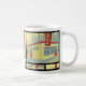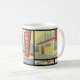 Esta caneca caracteriza um teste padrão retro da ilustração da cafetaria aparado no preto para uma sensação distintiva do vintage e um olhar à moda a ela. Faz um presente perfeito.