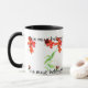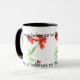 Uma caneca branca da campainha da boa qualidade com a borda impressionante e o punho pretos, decorados com os wallflowers pintados à mão de uma aguarela do design. O texto lê, "esta caneca pertence ao jardineiro principal". Microonda e cofre forte da máquina de lavar louça.