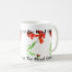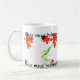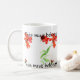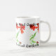 Uma caneca branca da campainha da boa qualidade com a borda impressionante e o punho pretos, decorados com os wallflowers pintados à mão de uma aguarela do design. O texto lê, "esta caneca pertence ao jardineiro principal". Microonda e cofre forte da máquina de lavar louça.