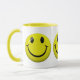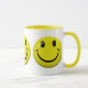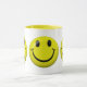 Três que brilham, envoltório feliz das caras do botão da cara em torno desta caneca legal. Pnha sobre uma cara feliz com esta caneca feliz brilhante, bonito, engraçada! Dê um a seus família e amigos para lembrá-los para pôr sobre uma cara feliz! Excelente para miúdos, adolescentes, homens e mulheres de todas as idades! São mostrados o café branco ou qualquer copo da bebida com guarnição amarela. Outras cores estão disponíveis.