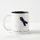 Caneca de café que aumenta a consciência para o abuso doméstico, não apenas em outubro mas cada mês. Design saboroso, caneca branca com uma fita roxa. A escrita na caneca diz, "a consciência do abuso doméstico deve ser 12 meses do ano.