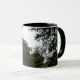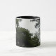 Esta linda caneca apresenta uma fotografia tirada de dentro de uma floresta densa. A fotografia mostra a escuridão das árvores e uma pequena área do céu das cinzas. O resultado é uma cena estranha e atmosférica. A design é mostrada em uma caneca de café em estilo preto e branco, mas também está disponível em vários outros estilos e cores de canecas.