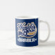 O presente legal da caneca dos azuis marinhos e do branco diz o melhor barbeiro do mundo.