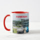 Panmunjom é o lugar onde as negociações do armistício ainda ocorrem entre os países de United Nations e a Coreia do Norte, a caneca tem uma foto negligenciar a vila da trégua do lado de Coreia do Sul. Esta é uma grande caneca para qualquer um que gosta da história ou está interessada na encenação inteira da Guerra da Coreia. A caneca pode ser personalizada.