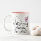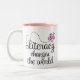 A instrução bonita muda a caneca do mundo é uma maneira especial de aumentar a consciência sobre a importância de uma boa educação para as crianças de todo o mundo. A leitura é a chave aos bons trabalhos e a uma compreensão melhor de nosso mundo.