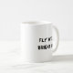 Uma libélula pensativa da aguarela enfeita o lado desta caneca, junto com a bênção: Mosca bem, a brilhante!