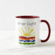 Uma caneca da luz interna do quacre com um nascer do sol da aguarela sobre um oceano da aguarela. Você pode personalizar estas canecas toda a maneira que você quiser. Pnha mesmo suas próprias citações favoritas do quacre sobre elas.