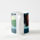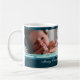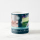 A caneca feita sob encomenda da foto da mamã do Feliz Natal em máscaras à moda do azul da cerceta e a turquesa em um teste padrão delicado do floco de neve com texto customizável e foto, aperfeiçoam como um presente de época natalícia.