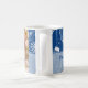 A caneca feita sob encomenda da foto da mamã do Feliz Natal no teste padrão azul e branco à moda do floco de neve e das decorações com texto customizável e foto, aperfeiçoa como um presente de época natalícia.