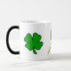 Uma caneca em mudança da cor com os 2 trevos nela. Descrição modelo: Uma caneca verdadeiramente original. Quando está fria, é apenas uma caneca preta simples. Quando você adicionar toda a bebida quente (água, chá, café, etc.), a imagem vem à vida em cores vibrantes. Handwash somente.