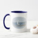 Barco de vela em uma caneca azul do oceano.