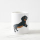 Caneca com o desenho de um Dachshund com a língua para fora.