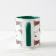 Uma caneca de natal festiva, com um padrão bonito, que consiste de um cão de salsicha em um saltador de natal vermelho e verde.