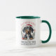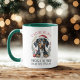Dachshund Through The Snow Doxie Christmas Coffee Mug apresenta uma ilustração moderna de cães dachshund vestindo um chapéu de Papai Noel em uma coroa floral com o texto "Dachshund through the snow on a one cavalo open sleigh" na tipografia moderna da escrita. Perfeito para aniversários, Natal e feriados como presentes para familiares e amigos, amantes de cães, mães de cães, pais de cães, babás e muito mais. Personalize editando o texto na caixa de texto fornecida. Criado pelo Evco Studio www.zazzle.com/store/evcostudio