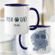 Celebrate your bond with your dachshund in this Dog Dad mug featuring a cool line art illustration of a stylish Doxie with sunglasses. The front showcases your beloved dachshund in sleek navy line art with artistic splash details, while the back features "DOXIE DAD" typography with a paw print and your custom dog's name. Perfect for the coffee-loving dog dad, this Dog Dad mug makes a thoughtful gift for any dachshund owner. Sip your morning coffee while showing off your furry best friend with this personalized combo mug.