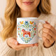 Embrace the Danish and Norwegian concept of Hygge—a feeling of cozy contentment and well-being—with this charming coffee mug. The design features a heart shape filled with traditional Scandinavian folk art motifs, including a Dala horse, stylized birds, and vibrant florals. This mug makes a beautiful, thoughtful gift idea for anyone who loves Nordic decor, traditional designs, and cozy home aesthetics. It's the perfect vessel for your slow morning tea or coffee.