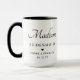 Caneca de Café Dama de Honra Personalizado Nome Festa de Casamento apresenta o nome da dama de honra com os nomes do casal e data do casamento acentuados com um pequeno coração de amor. Feito sob medida para suas damas de honra. Criado por ©2024 Evco Studio www.zazzle.com/store/evcostudio