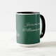 A quality coffee mug for all dart players and dart fans you can customize. The basic image features 3-colorful darts on a textured, dark green background. Personalize it with a name alongside the darts. The text is easily changed by using the template. If other changes are desired (different type font, color, size or placement) select "Personalize this template" then select "Edit using Design Tool." Check out Options for other styles of mugs that are available. You may want to scroll down to the section "Transfer design to a product" for samples of other items this design can be easily used on. Another option is to go to the Design Tool and select backgrounds for choices of other colors that you can choose.
