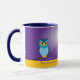 Duas corujas azuis adoráveis sentam-se em seus ramos sob o luar contra um céu amethyst. As estrelas saíram atrás delas fazer a isto uma caneca bonito para qualquer um que ama e aprecia corujas. Adicione uma mensagem personalizada na banda verde abaixo. Disponível em cores alternativas com produtos de harmonização.