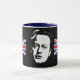 A nossa caneca patriótica mostra o rosto do Primeiro-Ministro britânico David Cameron flanqueado em ambos os lados pela bandeira do Reino Unido.