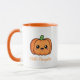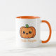 Uma caneca com uma abóbora fofa no estilo Kawaii e texto personalizável: perfeita para ter seu café no Halloween!
