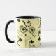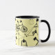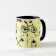 Vamos acampar caneca com padrão. Design que inclui ilustrações de guloseimas de campismo. Ilustrações pretas contra fundo amarelo canário. design de excelente para o entusiasta do exterior.