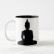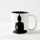 Uma imagem contínua e simples de sentar Buddha. Buddha está no estado meditativo com seus pés cruzados, sentando-se. A imagem é feita como a silhueta, colorida somente no preto, com bordas afiadas.