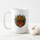 Uma cabeça de dragão oriental impressionante em tons vermelhos, laranja e lacrimejantes com contornos negros ousados. Símbolo de força, sabedoria e potência — perfeitamente exibido nesta caneca exclusiva.