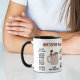 A característica de cada lado desta caneca é a receita de cacau quente! O texto está em cinzas vermelhas e escuras marrom, separadas por uma xícara de sua bebida favorita no inverno, cheia de marshmallows. Quão útil é isso?!