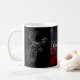 Logotipo do crime e imagem verdadeiros canadenses do carribou pelo artista Riley Tenove em uma caneca do café ou do chá