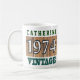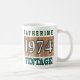 Nascer em 1974. Celebrando o Ano do Nascimento. Caneca de celebração de aniversário. O proprietário é a Vintage de 1974. O design aparece em ambos os lados da caneca.