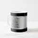 25as canecas de café do aniversário de casamento com olhar de prata simulado do fundo do metal, 25a prata do aniversário que olham a rotulação, e área que de texto você pode personalizar. Projetado como celebrações do casamento, este design elegante e elegante é divertimento para um favor comemorativo do presente ou de partido do copo de café ou da caneca de café do casamento.