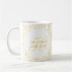 Beleza personalizada com seus nomes e datas em ouro falso sobre um delicado "50" (ou monograma inicial) em um delicado fundo de confete de ouro. Projetado por Piglet © Pura em www.zazzle.com/purepiglet*.