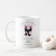 Comemore em estilo com esta moderna caneca de café "Fabulosa e 50", totalmente personalizável, com saltos altos e elegantes, pretos, com arcos cor-de-rosa. Perfeito para um glamouroso 50º aniversário ou presente. Totalmente editável, altere as frases se desejar e edite detalhes pessoais.