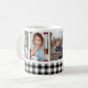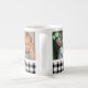 Uma caneca preta de xadrez festiva para personalizar com 5 fotos.