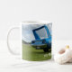 Caneca de café com a imagem do Super Pássaro Plymouth B5 Azul de 6-Barrel, 1970, do Antigo Hippie.