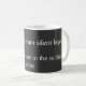 Uma caneca de cinza branca e escura com uma citação latina e a tradução em inglês por baixo. "A lei fica muda no meio das armas" é uma citação do advogado romano Cícero. Significa basicamente que, quando uma guerra está em curso, as questões jurídicas e a legalidade de certas ações ficam em segundo plano.