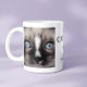 Celebre a melhor mãe de gato com esta caneca personalizada. Você pode facilmente adicionar duas fotos do seu gato ou gatos e adicionar os nomes dos gatos e o ano.