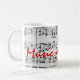 Chá, por favor! Parte de partitura coral isolada em um fundo branco. A música é minha vida na cobertura vermelha do texto. Parte temático preta forte dos músicos brancos e vermelhos. Mude o texto a seu nome ou texto!