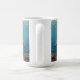 A sea turtle themed coffee mug with an illustration of a sea turtle under a calm teal sea swimming among the coral on the ocean floor with sun rays beaming down on him through the aqua water.