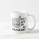 A vida de um gato é um texto tão extenuante com a imagem de um gato-cinza adormecido, com um sorriso no rosto, é uma design engraçada para amantes de gatos.