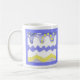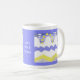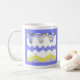 Esta "Life's Ups & Downs Mug" apresenta uma design amarela e azul esbranquiçada do sol e da ascensão da lua e ao longo de uma série de colinas e balas, como uma pequena figura grita sobre uma montanha abaixo. A vida está acima e abaixo. São colinas e dales. Uma maneira humorística de ponderar a vida, enquanto bebe uma xícara de café fresca. Ou chá.