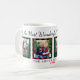 Personalize este café "É a época mais maravilhosa do ano" ou uma caneca de cacau quente com quatro (4) fotos favoritas da sua família. Os fundos com padrão de xadrez de búfalos vermelho, verde e preto armam as fotos. Personalize com texto personalizado para seus nomes / nome da família e o ano. Dica da foto: recorte as fotos para um formato quadrado antes de carregar. Crédito das fotos: Duas Fotografias de Peixe www.twofishphoto.com