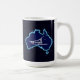 Uma simples silhueta branca de um trenó de cão e a Cruz do Sul sobrepuseram-se a um mapa azul da Austrália. Tudo num fundo estelar. Quem teria mordido? Mudando de cabeça para baixo em Oz. O trenó de cachorro é bastante popular na Austrália. No Monte Hotham em Victoria há uma grande corrida todos os anos.